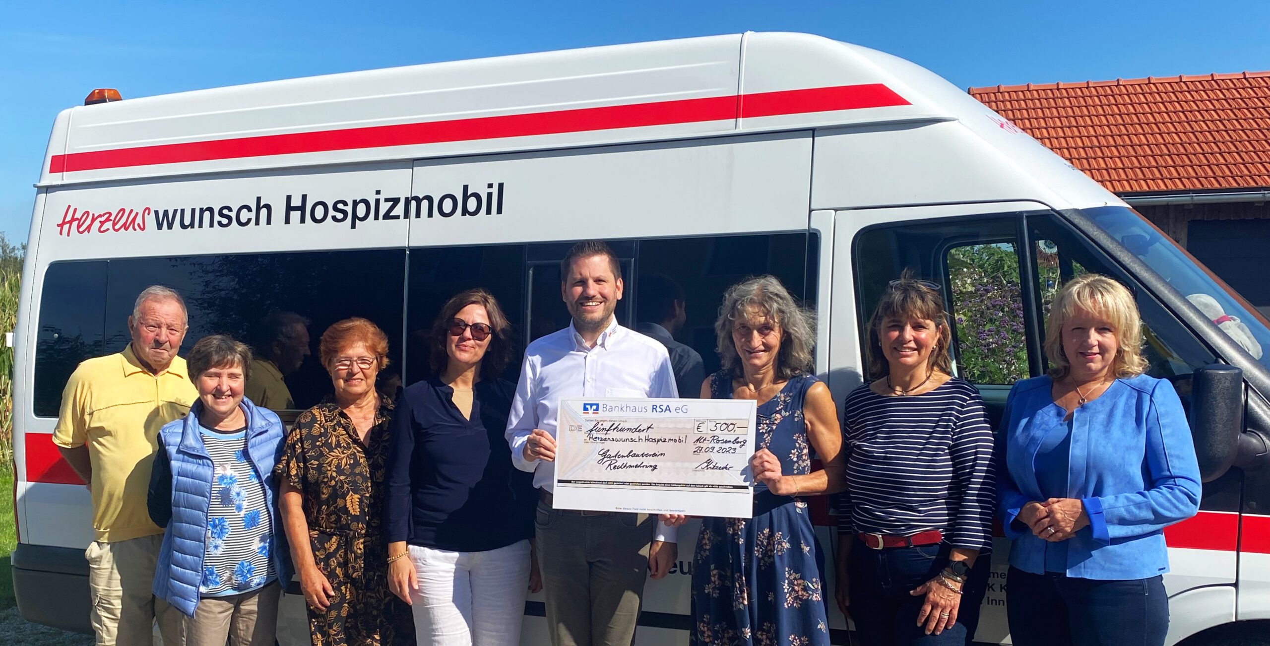 Eine tolle Geste: Der Gartenbauverein Rechtmehring spendete jetzt 500 Euro an das Herzenswunsch-Hospizmobil vom Roten Kreuz im Bereich Mühldorf Altötting. Gestern wurde da BRK-Team von der Vorstandschaft der Rechtmehringer Gartler herzlichst empfangen.