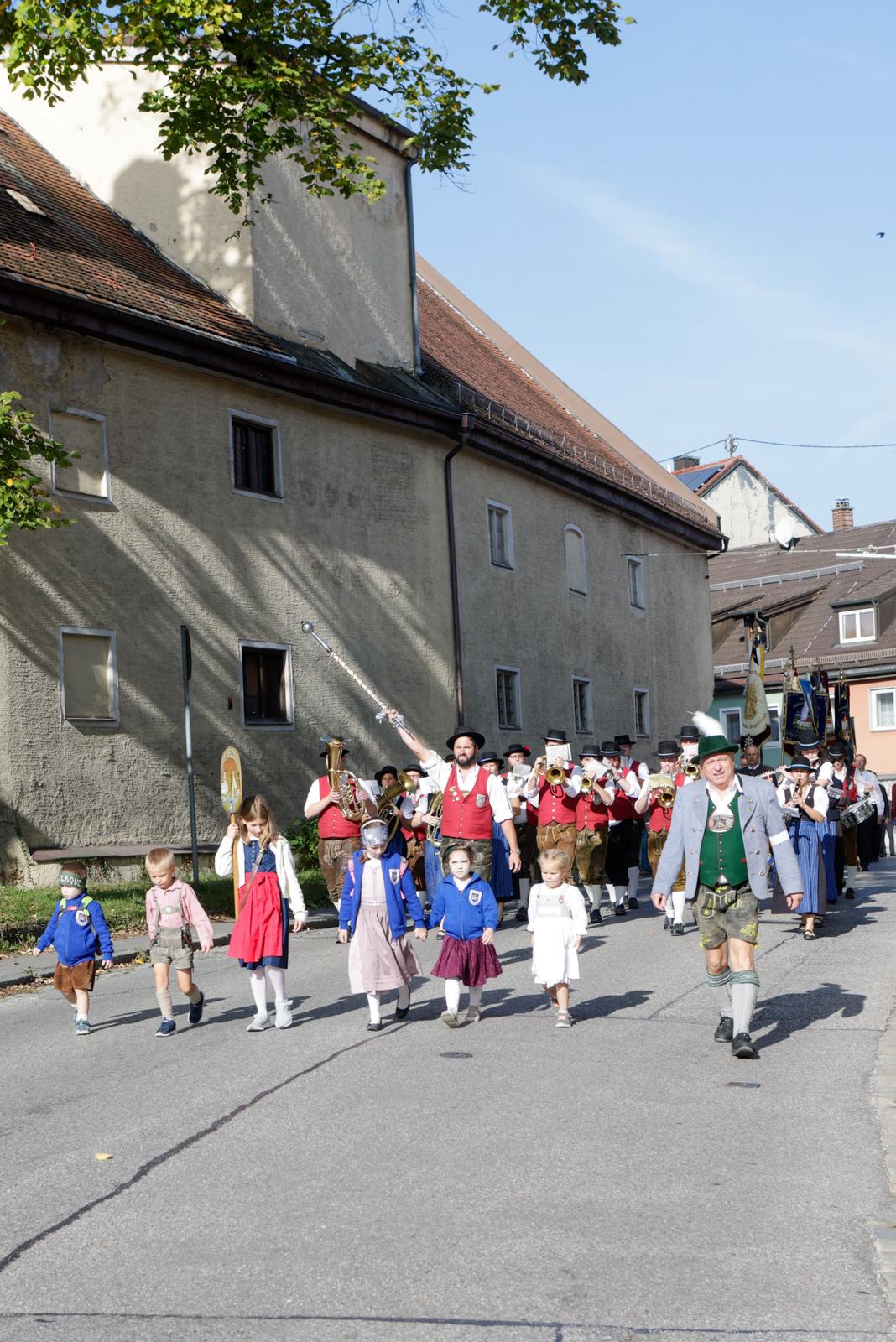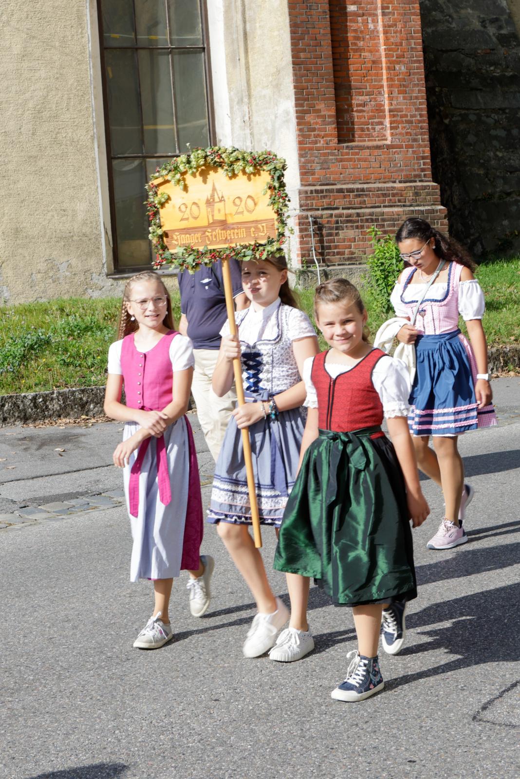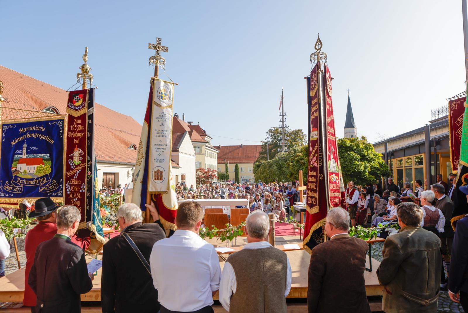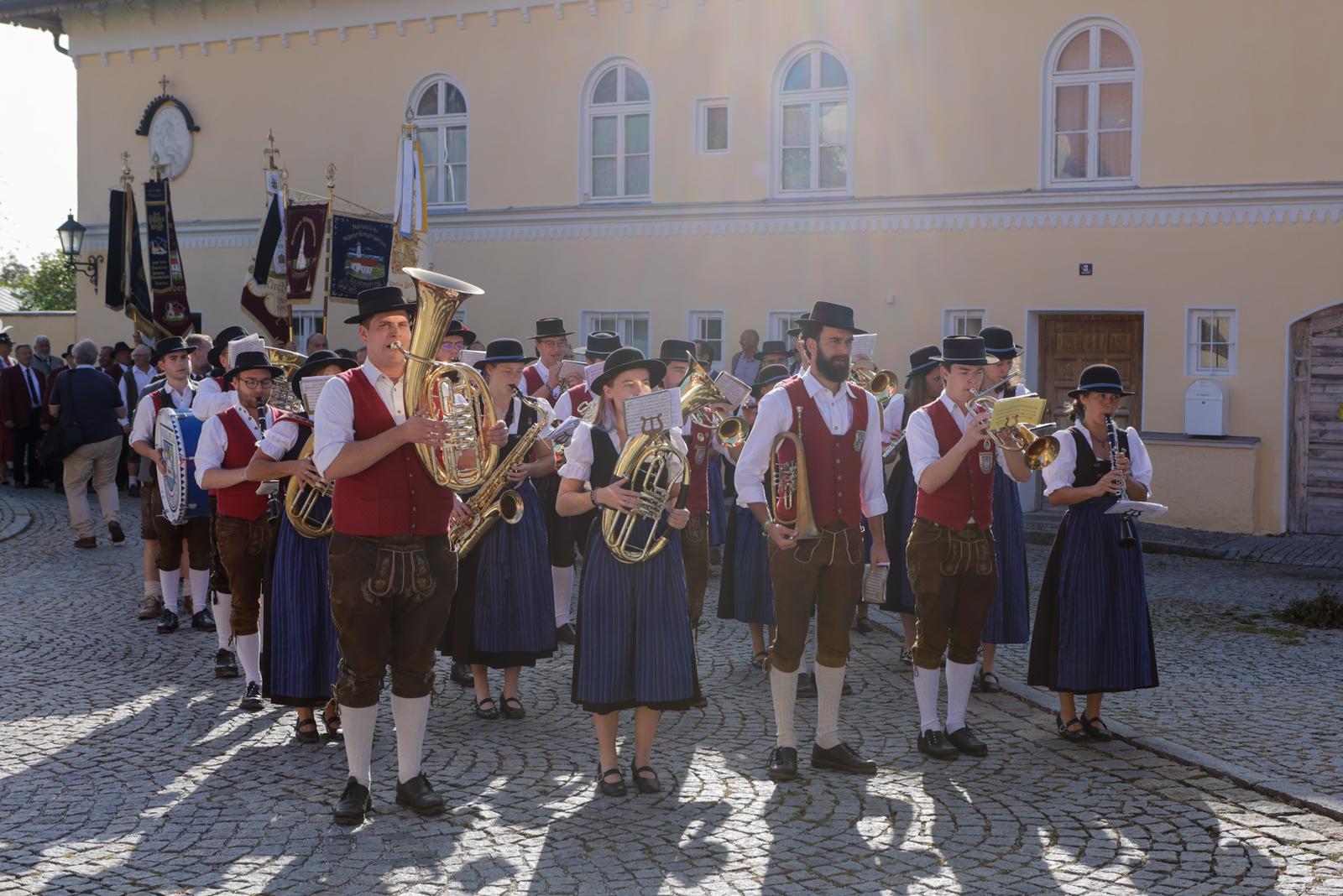 Viele Vertreter des Pfarrverbands und Gläubige aus der Umgebung hatten sich am Sonntagvormittag mit den Organisatoren des Festvereins, darunter Dr. Stephan Dörfler, sowie einer Vielzahl an Fahnenabordnungen und Musikgruppen, außerdem den hiesigen Schützen versammelt, um diesen Festtag zu feiern. Der Kirchenzug war dabei ebenso feierlich, wie der Gottesdienst selbst.