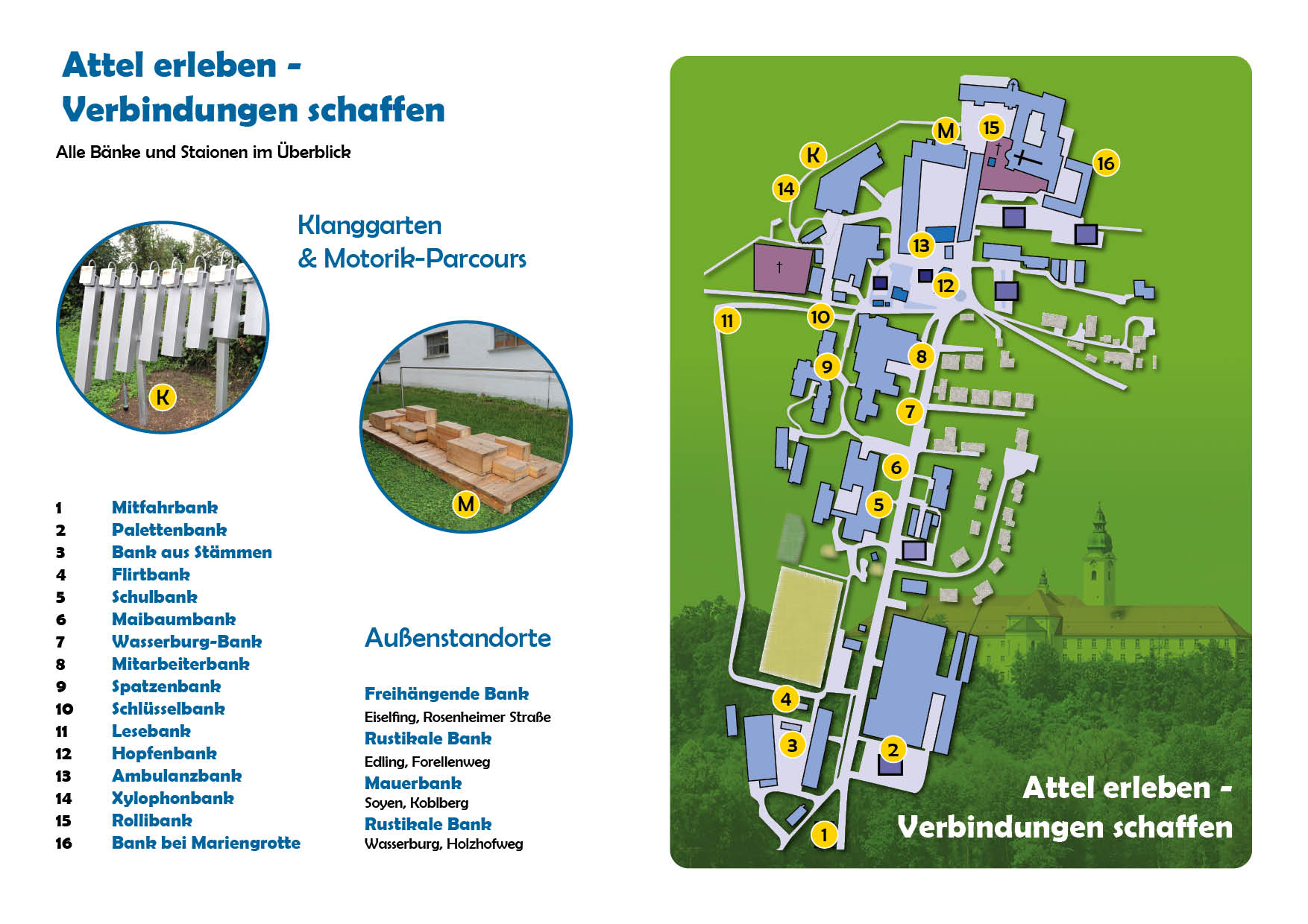 Darunter der Verein Wasserburg Bierkultur, der vor der Verwaltung der Stiftung Attl eine Hopfenbank aufstellte – die Katholische Landjugend Attl, die den alten Maibaum vor der Schule zu einer Bank verarbeitete oder der Gartenbauverein Rosshart-Attel-Ramerberg, der eine Bank an der Mariengrotte aufstellte.