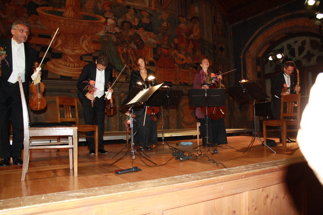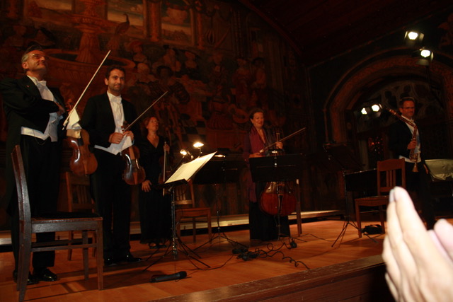 In Wasserburg traten sie zu fünft auf und unter der Leitung des Gründers Christoph Angerer, der selbst die Violine spielte, trat auch Ernst Schlader auf, der das Bassetthorn und die Bassettklarinette spielte.