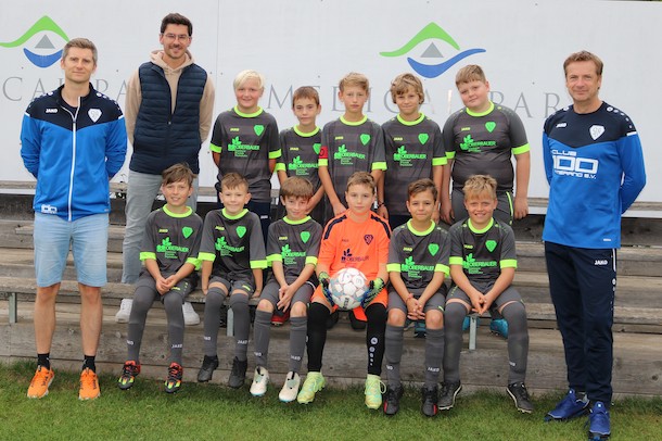 Die neuen Outfits kamen nach der Übergabe gleich zum Einsatz. Die Jugendleitung und Spieler der E-Jugend bedankten sich recht herzlich bei Marina Rieg und Andreas Oberbauer für die großartige Unterstützung.