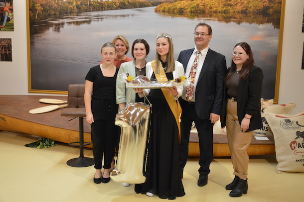 Neben der Kür zur Schokoladenprinzessin wurde gleichzeitig noch die neue Dengel-Schokoladenausstellung eröffnet. Die Organisatorin, Nicole Dengel, berichtete über die letzten neun Monate Vorbereitungszeit und freute sich, dass alles so umgesetzt werden konnte, wie geplant. Sie bedankte sich bei ihren Eltern für das große Vertrauen und die Unterstützung. In der Ausstellung zu sehen sind viele interessante Informationen rund um das Thema Schokolade, Bilder aus Kolumbien und Venezuela sowie filigrane Schokoladenkreationen.
