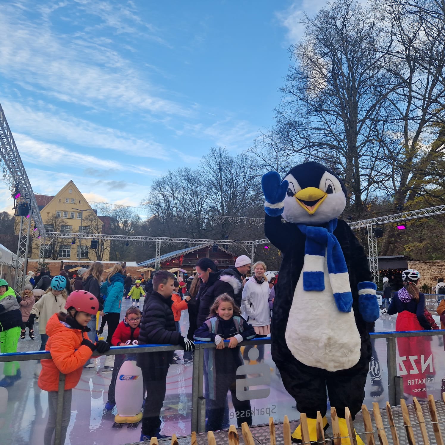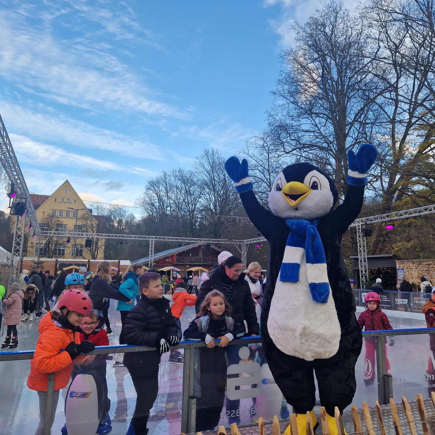 Es war ein bisschen wie im April: Sonne, Wind, Wolken – Wind, Wolken, Sonne. Der heutige erste Eislauf-Sonntag in der Sparkassen-Arena in Wasserburg war bereits tagsüber sehr gut besucht, obwohl das Wetter alles andere als nach Wintersport aussah. Den kleinen und großen Eisläufern war’s egal. Sie vergnügten sich den ganzen Tag über am Gries beim Schlittschuhlaufen.Und „Wapi“ der große Wasserburger Eislauf-Pinguin durfte natürlich auch nicht fehlen.Er kommt immer sonntags um 15 Uhr. Fotos: TW