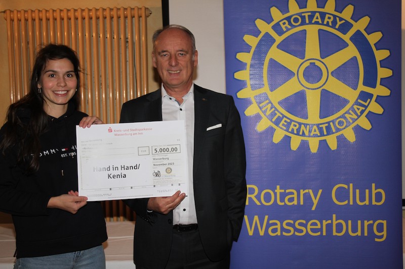 Auch das Engagement des 2004 in Edling gegründeten Vereins „Hand in Hand für Kenia“ wurde mit einem Scheck über 5.000 unterstützt. Seit Vereinsgründung werden in der Nähe von Nairobi ein Waisenhaus, eine Schule und ein Internat mit großem persönlichem Engagement betrieben. Veronika Berndl als Vertreterin dieser Non-profit-Organisation bedankte sich für die Unterstützung und versprach nach ihrem nächsten Besuch vor Ort den Rotary Club wieder mit einem kleinen Bericht zu informieren.