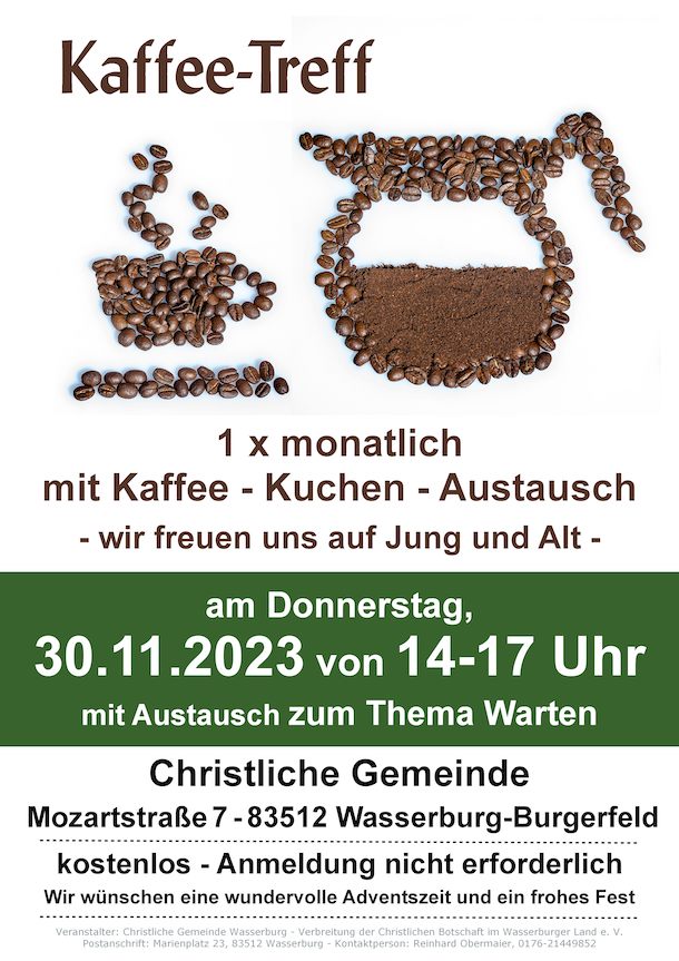 Christus-Gemeinde Wasserburg lädt wieder zum Kaffee-Treff ein