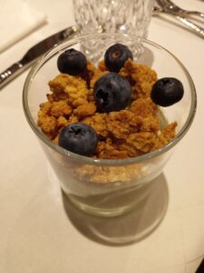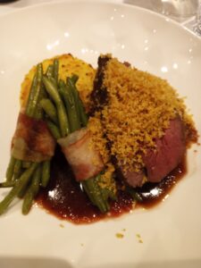Beim Hauptgericht wird es, wie auch in den Vorjahren, eine Auswahl geben. So dürfen die Ballbesucher zwischen einem Garnelenspieß mit Erbsenrisotto und Ingwerkarotten, einem Rinderfilet mit Kartoffeltörtchen und Speckbohnen in Roweinjus oder einem Knödeltris mit Champignons, Parmesan und brauner Butter wählen. Zum süßen Abschluss gibt es ein Key Lime Pie im Glas, eine Limettencreme mit Crumble und Heidelbeeren.