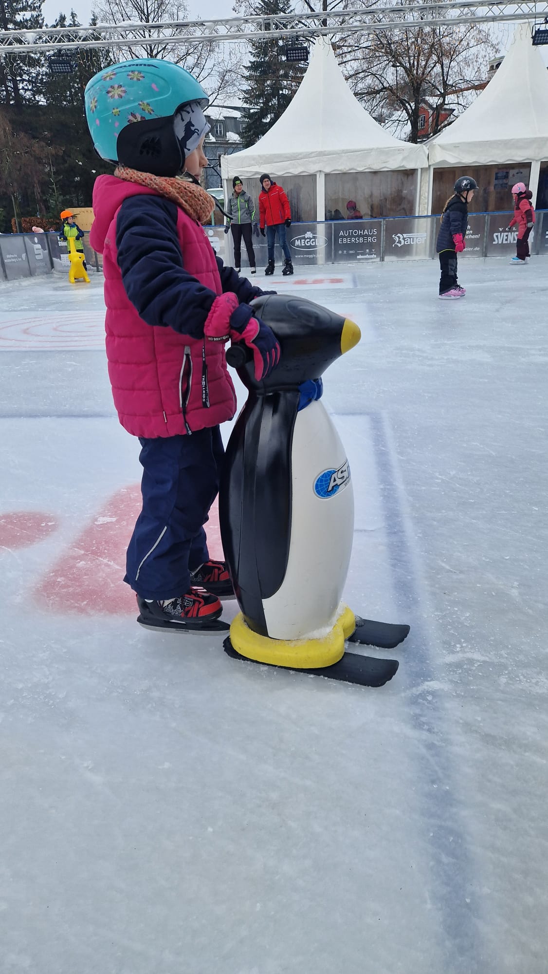 Das ging zum Glück recht schnell: Gestern Abend war der entwendete Pinguin (wir berichteten) an der Sparkassen-Eislauf-Arena plötzlich wieder da. Im Schutz der Dunkelheit hatten ihn die Diebe hinter der Laterndl-Alm ausgesetzt. Dort stand er wartend und einsam herum, bis ihn Mitarbeiter der Alm entdeckten. Er ist jetzt wieder bei seinen Pinguin-Geschwistern auf der Eislaufbahn am Gries zu finden. Die Kinder wird’s freuen – jetzt gibt es wieder sechs Eislaufhilfen.
