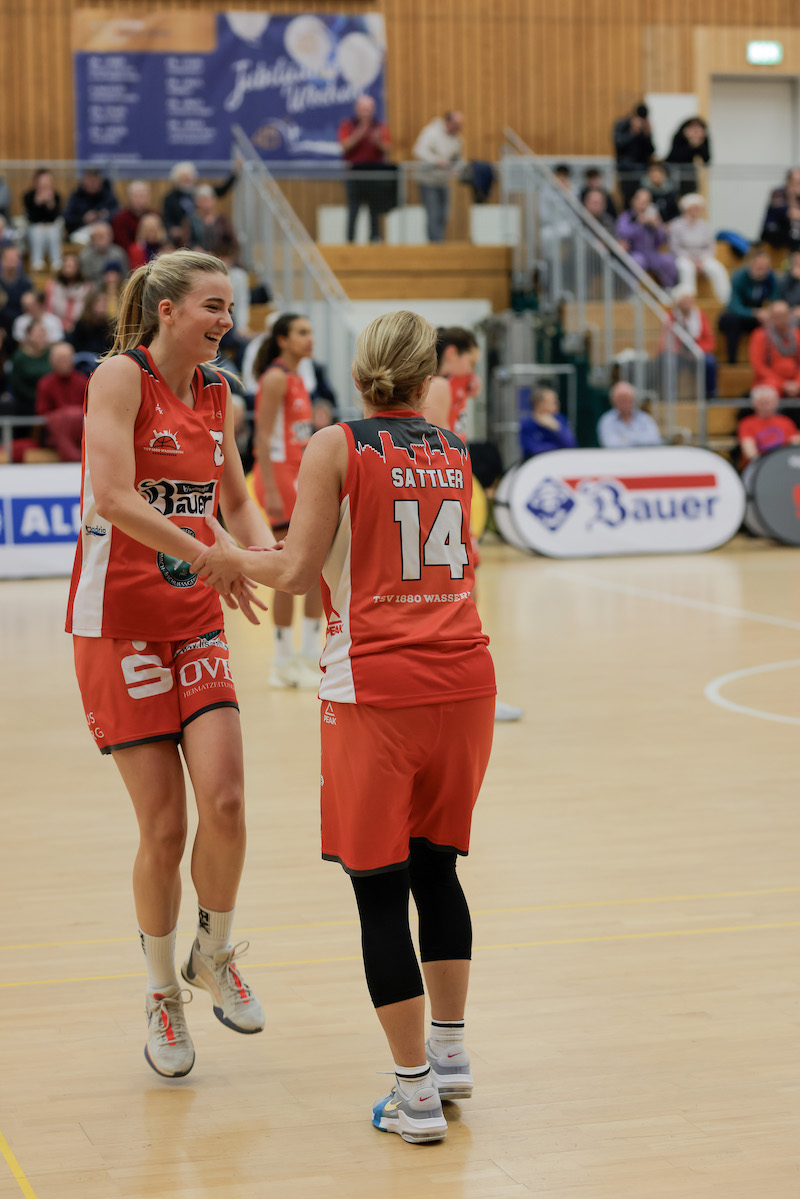 Dass an diesem Abend die 100 Punkte-Marke wohl geknackt werden würde, war nicht so unwahrscheinlich in den verbleibenden zehn Minuten. Es war nur noch die Frage, wer dies wohl tun würde. Am Ende war es niemand anderes als Anja Sattler, ein richtiges Wasserburger Urgestein, die eigentlich in der Damen 2 spielt und heute aushilfsweise auf der Bank saß, nachdem die U18w-Spielerinnen selbst ein Spiel hatten. Und wie sollte sie es anders tun, als mit einem Dreier? Am Ende gewannen die Wasserburger Basketball-Damen mit einer geschlossenen Teamleistung deutlich mit 113:57.