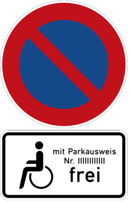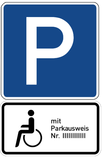Reguläre Behindertenparkplätze erkennt man am Zeichen „Parken“ zusammen mit dem Zusatzzeichen Nr. 1044-10. Unter Umständen können Parkplätze auch Personen mit einer bestimmten Ausweisnummer vorbehalten sein. Außerdem können Behindertenparkplätze dadurch freigehalten werden, dass ein eingeschränktes Haltverbot für bestimmte Personen aufgehoben wird.
