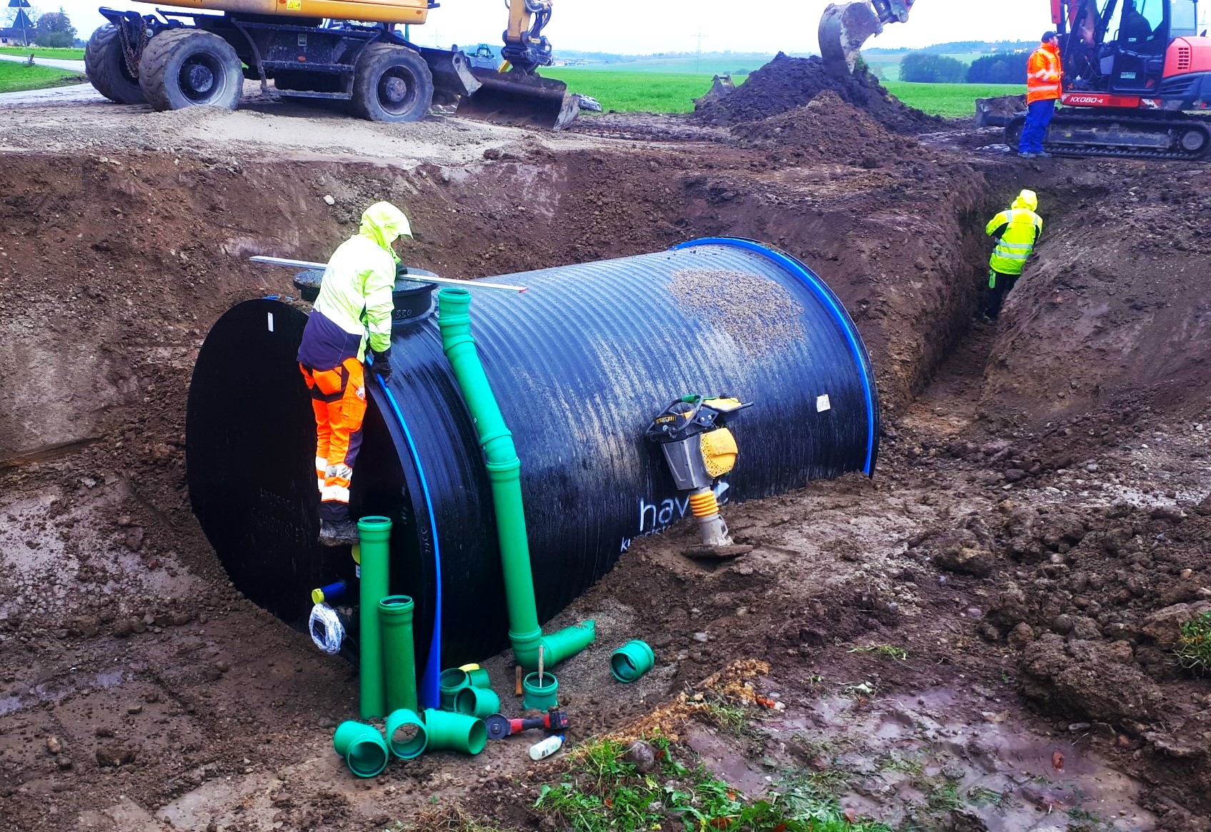 Das Foto zeigt die Bauarbeiten für einen Übergabeschacht an der neuen Trinkwasser-Verbundleitung zwischen Schonstett und Söchtenau. Die Verbandsversammlung des Zweckverbands zur Wasserversorgung der Schonstetter Gruppe hat jetzt die neue Gebühren-Kalkulation genehmigt: Somit bleibt der Wasserpreis in den kommenden beiden Jahren unverändert.