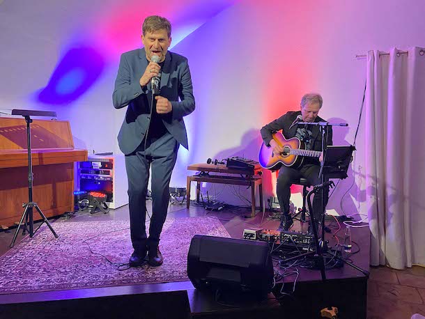 Mit „wir“ meint er auch den Wasserburger Gitarristen Andreas Rother, der ihn an beiden Abenden musikalisch durch das Programm begleitete. Und Letzteres war mehr als nur eine reine Lesung von Altingers „total verlogenem autobiografischem Weihnachtsbuch“, wie es der Untertitel beschreibt.