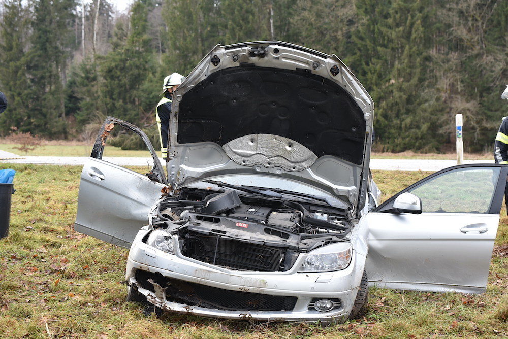 Ein 71-jähriger Mercedes-Fahrer kam aus bisher unbekannten Gründen alleinbeteiligt mit seinem Wagen plötzlich nach rechts von der Fahrbahn ab. Das Auto überschlug sich mehrfach und kam anschließend auf einer angrenzenden Wiese zum Stillstand.