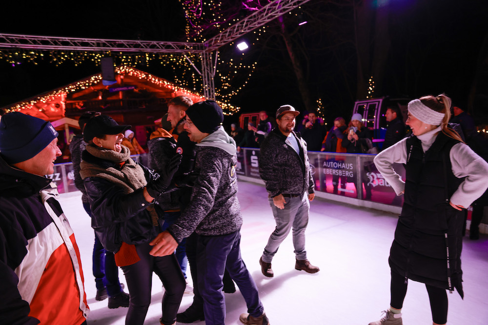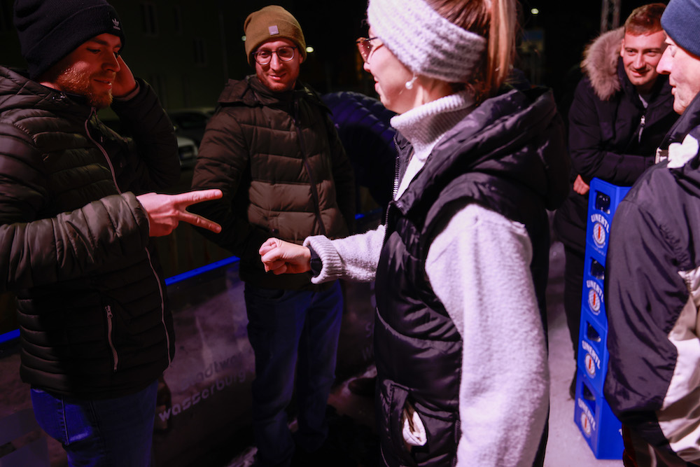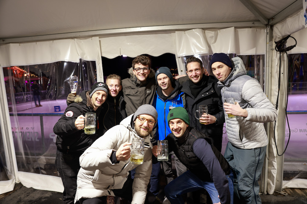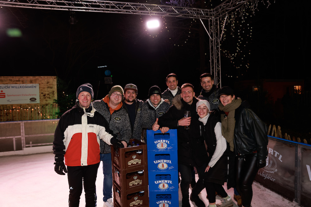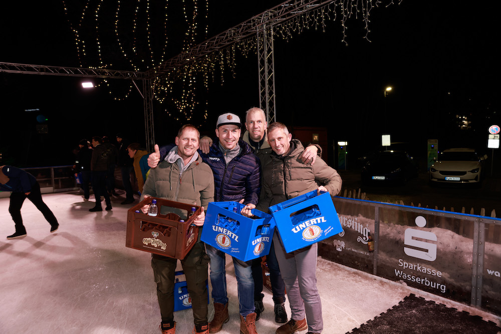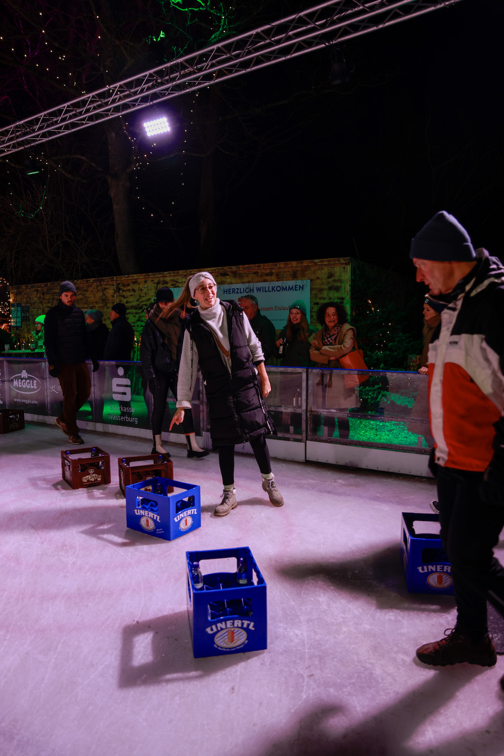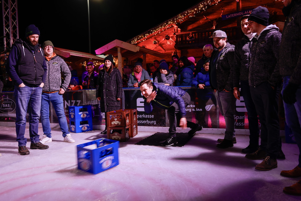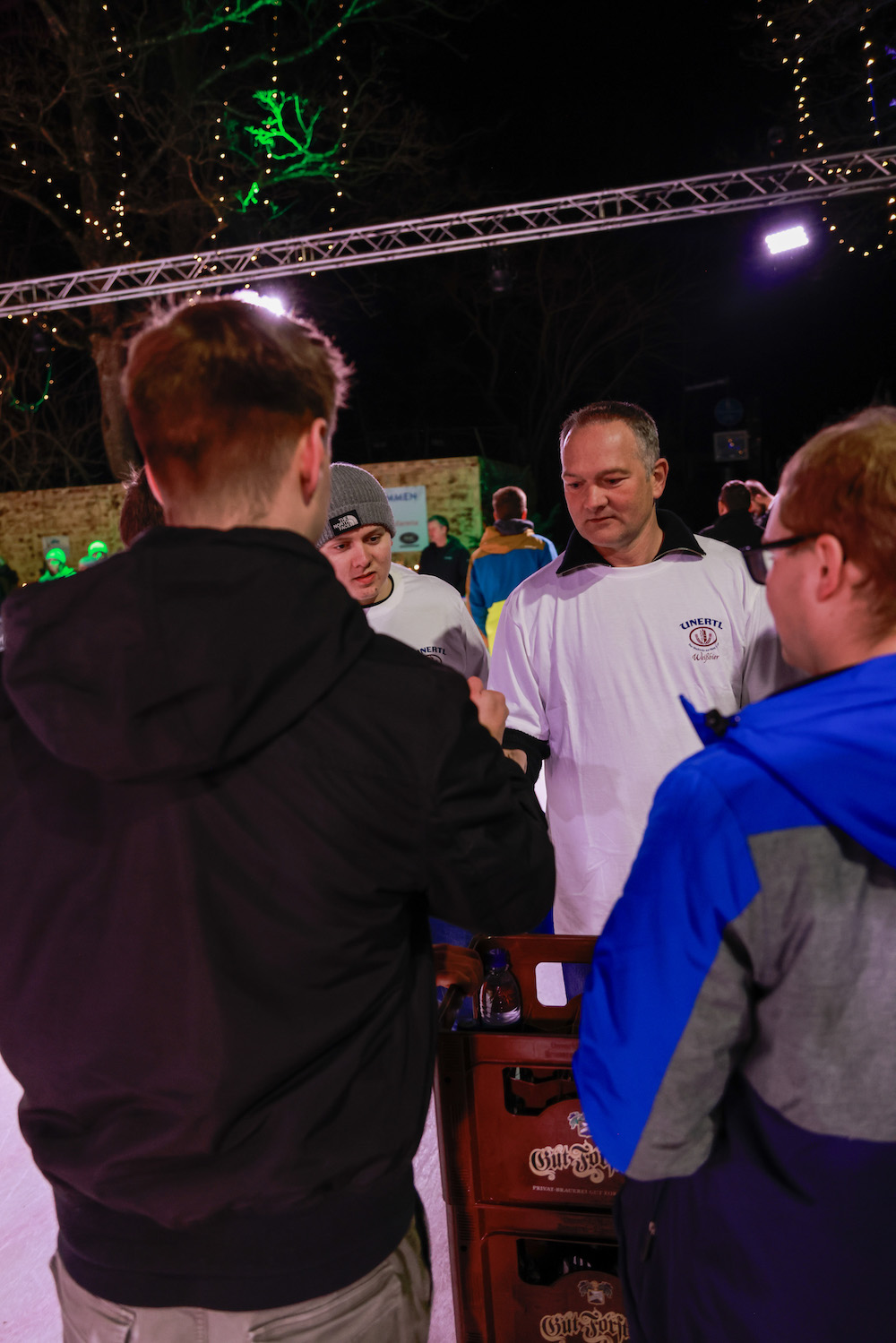 20 Teams gestern beim Bierkasten-Curling in der Sparkassen-Eislauf-Arena im Wettstreit