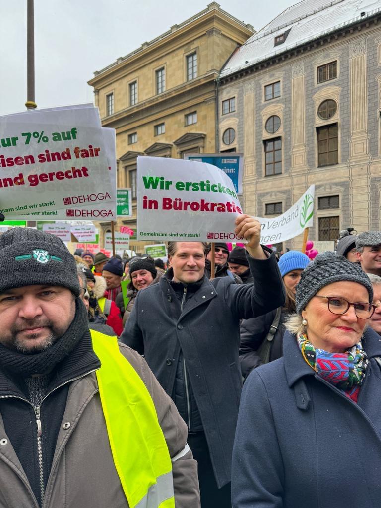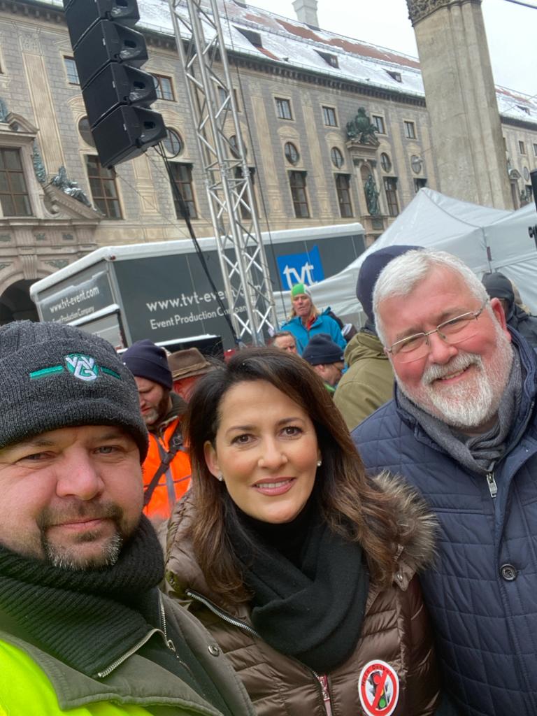 Andres war zusammen mit dem Albachinger Landtagsabgeordneten Sebastian Friesinger (links) nach München aufgebrochen und stellte sich selbst als Ordner zur Verfügung. Um 8 Uhr war Einweisung, um 11 Uhr Kundgebung, um 13.30 Uhr Ende – und das alles bei Minustemperaturen. Mit von der Partie und auf dem Foto: Rosenheims Landtagsabgeordneter Daniel Artmann (Mitte), die Präsidentin des Bayerischen Landtags, Ilse Aigner, und der Leiter der Bayerischen Staatskanzlei, Florian Herrmann (rechts).