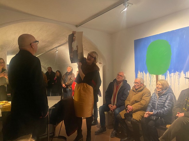 Andreas Pytlik selbst war Ende der 90er Jahre des 20. Jahrhunderts Vorsitzender des Arbeitskreises. Meindl meinte in ihrer Begrüßung, dass sie sich „saumäßig“ freue, weil so viele Menschen zu dieser Vernissage gekommen waren. Sie wies auch gleich darauf hin, dass im Untergeschoss des Ganserhauses ein Filmclip laufe, in dem Andreas Pytlik seine Anliegen mit der Ausstellung „planting trees in minds…“ genauer erläutere.