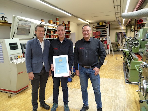 Foto (von links): Rudi Schiller (Kreishandwerksmeister), Wolfgang Obermaier, Michael Seidinger.