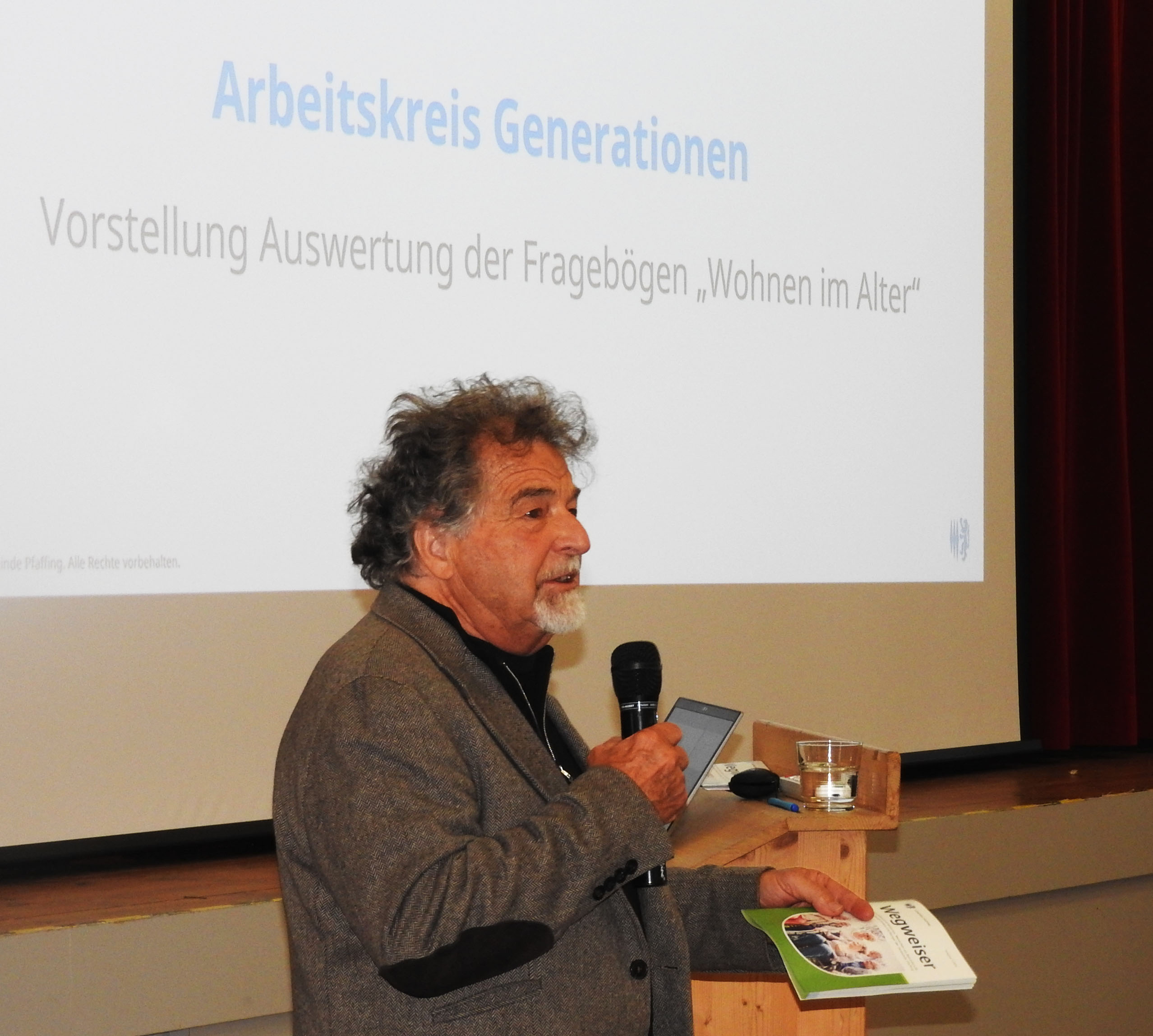 Dr. Höchstetter hält hier den aktualisierten „Wegweiser für Senioren und Menschen mit Behinderungen“ – und auch für alle Pfaffinger Bürger gedacht – in der Hand: Dieser ist in der Gemeinde Pfaffing neu erschienen und wurde bei der Versammlung von Bürgermeister Niedermeier kurz vorgestellt. Für alle lag das Heft schon mal zum Mitnehmen aus …