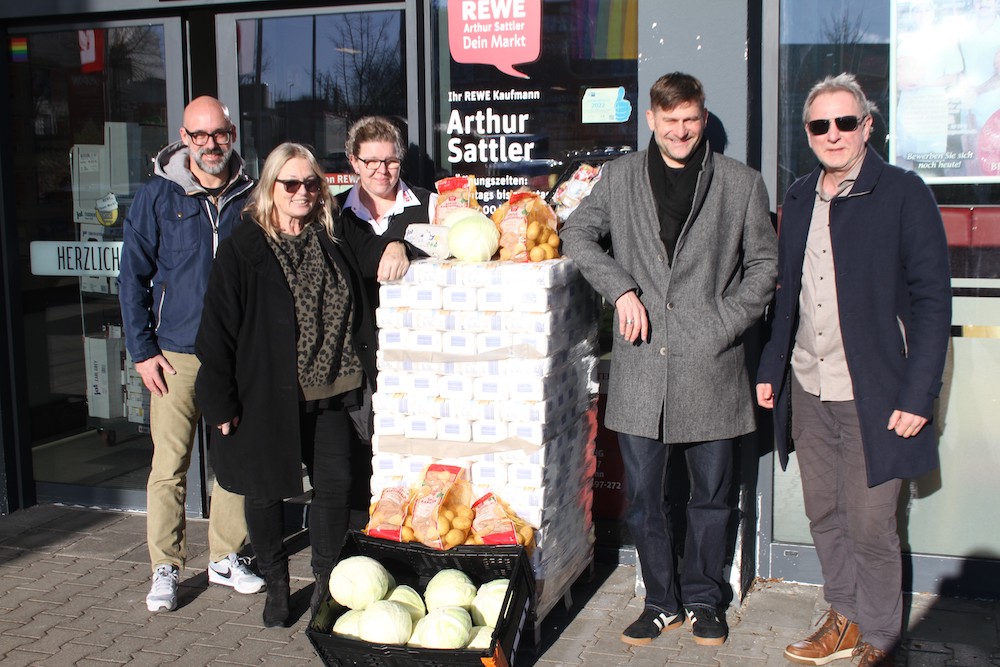 Der Rewe Markt Sattler unterstützte diese Aktion zusätzlich durch gewährte Vorzugspreise beim Einkauf. Dritte Bürgermeisterin Edith Stürmlinger bedankte sich ausdrücklich bei den beiden Künstlern für ihr soziales Engagement.
