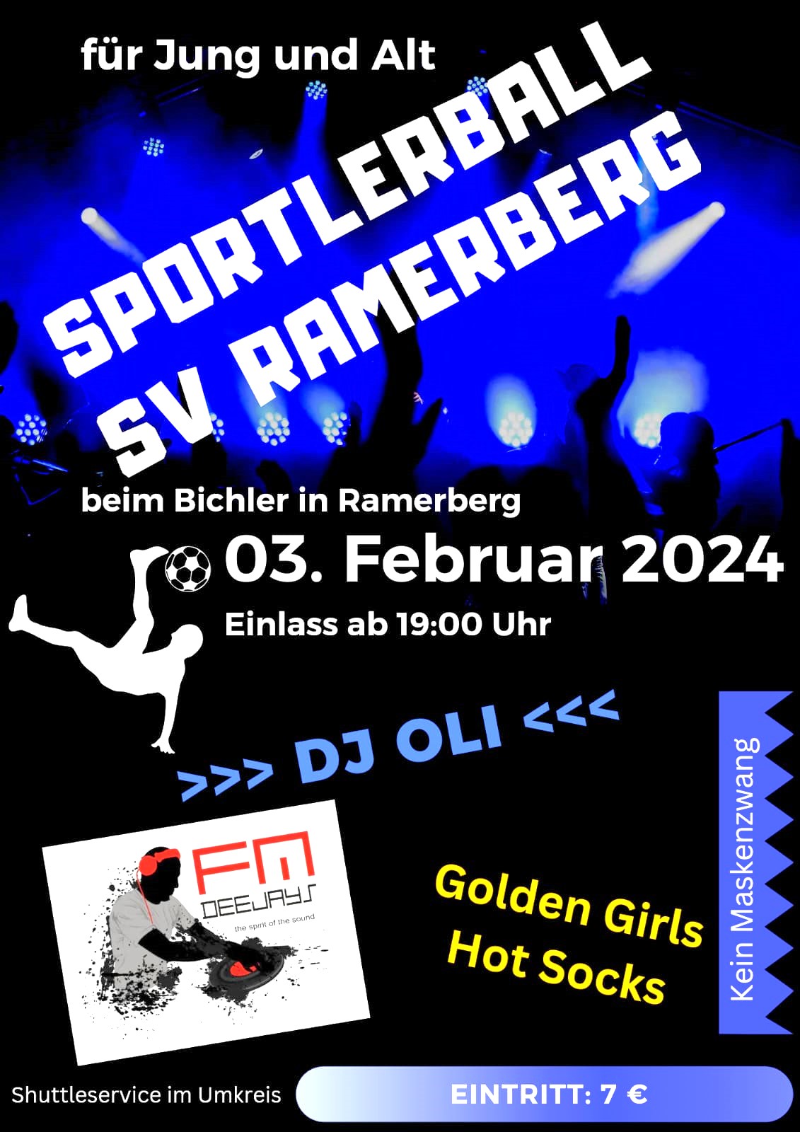Der SV Ramerberg lädt am kommenden Samstag, 3. Februar, zum legendären Sportlerball ins Gasthaus Bichler nach Ramerberg ein. Einlass ist ab 19 Uhr. Der Eintritt kostet sieben Euro.