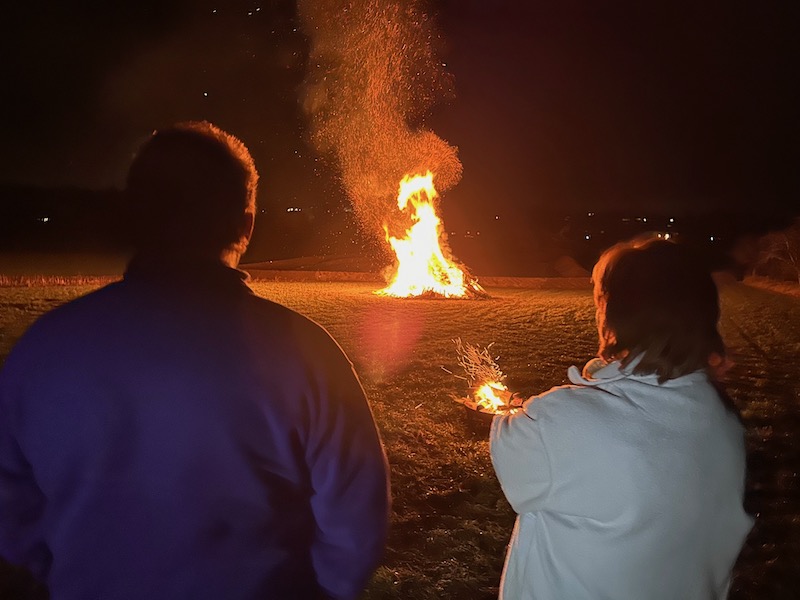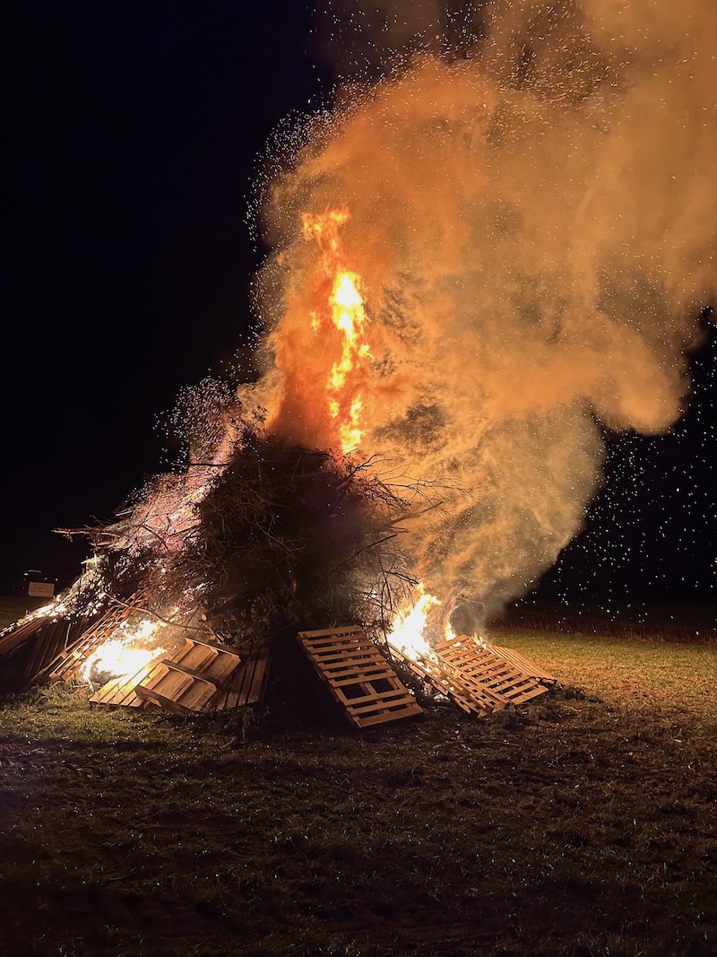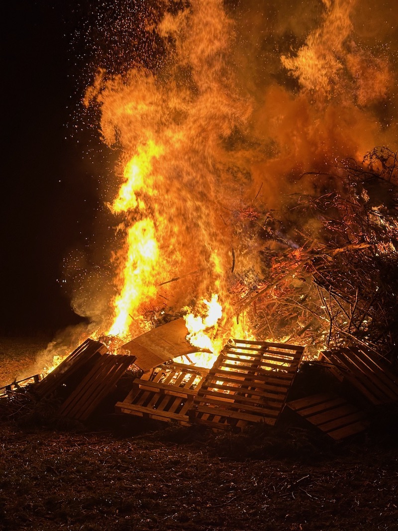 Gegen die Politik der Ampel-Regierung in Berlin richtet sich gestern Abend auch ein Mahnfeuer beim Weiler Sinkenbach zwischen Haag und Maitenbeth. An der B12 trafen sich dazu zahlreiche Bürger aus den umliegenden Gemeinden. Fotos: Georg Barth
