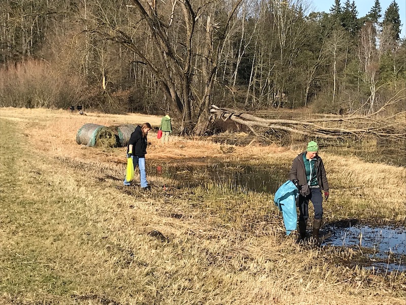 Müllsammeln auf einer Feuchtwiese in Rudering ein voller Erfolg
