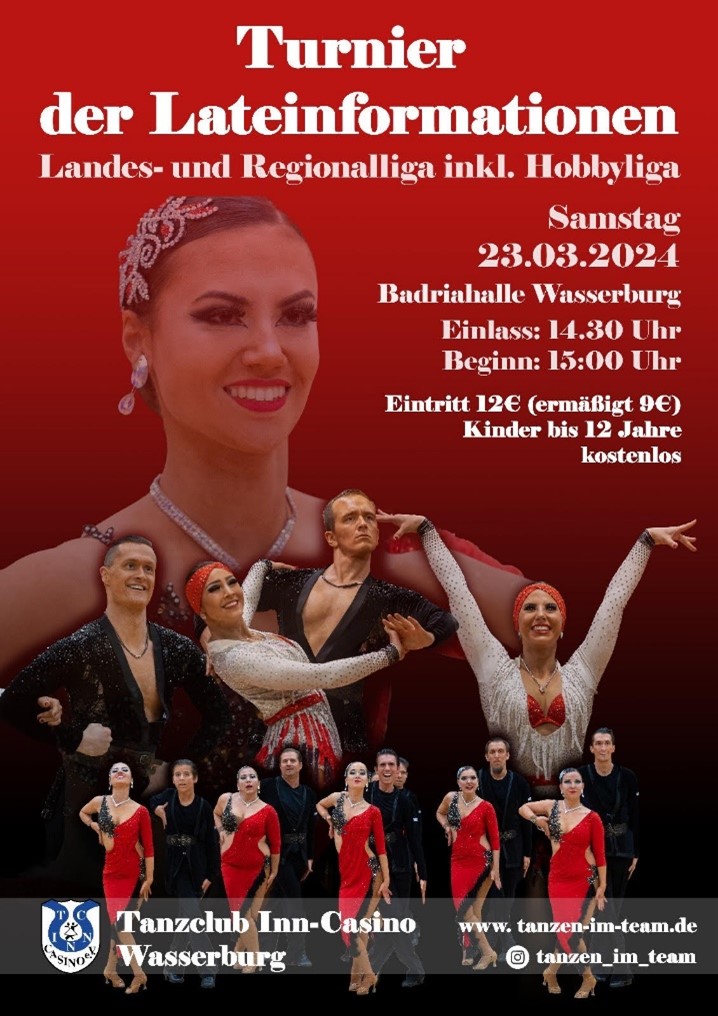 Wer selbst in die Welt der Lateinformationen eintauchen und die einzigartigen Darbietungen liveerleben möchte, ist zum Heimturnier und dem gleichzeitig 4. Ligaturnier am 23. März in der Badria-Halle eingeladen. Die beiden Teams freuen sich, ihre Choreografien Freunden, Familie und dem Wasserburger-Publikum zu zeigen und hoffen auf zahlreiche begeisterte Zuschauer. Für das leibliche Wohl ist mit herzhaften sowie süßen Speisen und Getränken gesorgt.