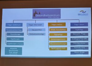 Das Gesundheitszentrum Haag in Oberbayern unterhält zukünftig verschiedene Trägerschaften unter einem Dach. Das InnKlinikum selbst bietet mit dem Therapiezentrum Haag die Physiotherapie und Ergotherapie sowie die geplante Logopädie. Außerdem wird eine Adipositas Sprechstunde von Professor Schopf angeboten. Unter der Trägerschaft der MVZ GmbH gibt es eine Hausarztsprechstunde MVZ sowie die fachärztliche Versorgung in der Gastroenterologie. Die neu gegründete InnCare gilt den Aufgaben der rehabilitativen Kurzzeitpflege sowie einer Tagespflege, Senioren-Appartements, Mitarbeiterwohnungen in geringem Umfang, um das Arbeiten in Haag attraktiver zu machen und neu gewonnene Kolleginnen und Kollegen vorübergehend mit einer Wohnmöglichkeit zu unterstützen, bis eine eigene Wohnung gefunden wird.