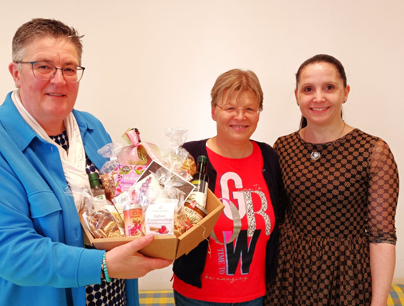 Seit 25 Jahren arbeitet Margit Kebinger (Bildmitte) im Katholischen Haus für Kinder „Arche Noah“ in Haag. Zu ihrem Dienstjubiläum gratulierten Kolleginnen und Kollegen und überreichten einen Geschenkkorb.