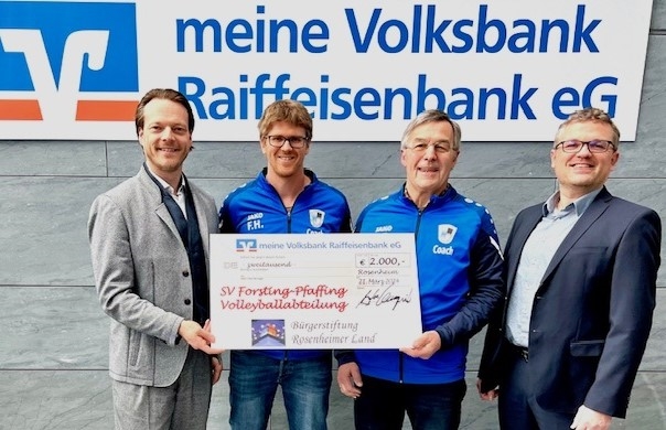 Jetzt gab es eine Riesenüberraschung von der Bürgerstiftung Rosenheimer Land der meine Volksbank Raiffeisenbank eG: Für die Volleyballer in Pfaffing wurde eine Spende in der stolzen Höhe von 2.000 Euro überreicht.