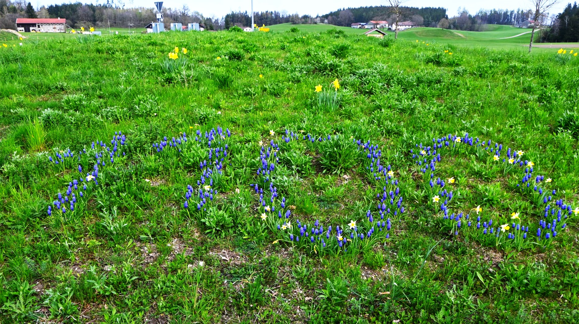 Und zwischendurch mal was für die Seele – heute aus Babensham kommend: Nicht nur Isabella Eicher, die Nachhaltigkeitsbeauftragte der Gemeinde Babensham, freut sich, dass sie nun blühen –  die hübschen Traubenhyazinthen als 1.100er Zahl zur 1.100-Jahrfeier des Dorfes. Eine hübsche Idee …