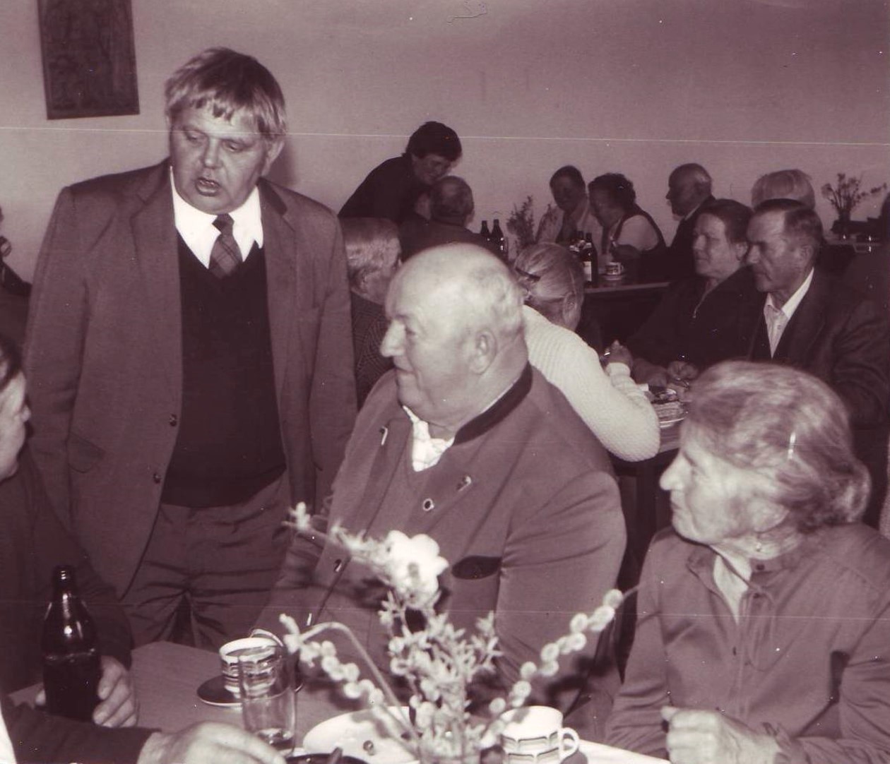 Historisches Foto: Pfarrer Alois Obermaier (links) beim Eiselfinger „Altentag“ im April 1984.