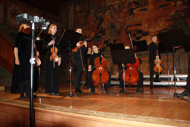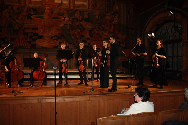 „Strings in motion“ ist der Name und er steht wohl dafür, dass die Saiten der Instrumente, die die Studentinnen und Studenten der beiden Musikakademien spielen, einerseits stets in Bewegung bleiben, andererseits aber auch die Zuhörerschaft zu bewegen vermögen. Insgesamt zehn Violinisten, vier Bratschisten, zwei Celiistinnen, ein Kontrabass sowie zwei Hörner und zwei Oboen machten ein Kammerorchester aus, das durch sein Spiel das Publikum intensivst anrührte und zu verzaubern wusste.