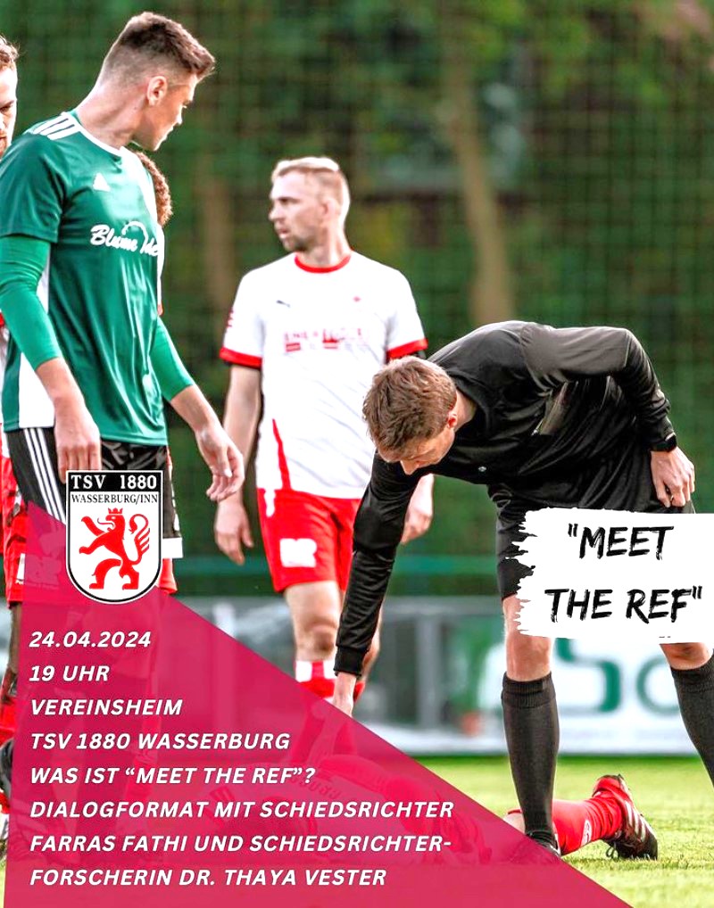 Der TSV 1880 Wasserburg ist dafür bekannt, dass er weit über den Tellerrand und den Fußballplatz hinausschaut und immer wieder einen kulturellen Beitrag für das Stadtleben leistet. In diesem Sommer haben die Löwen eine neue Partnerschaft mit der Philipp-Lahm-Stiftung und der Landeszentrale für politische Bildung in Bayern geknüpft. Am kommenden Mittwoch, 24. April, findet daher um 19 Uhr im Vereinsheim an der Landwehrstraße 10 die Dialog-Veranstaltung „Meet the Ref“ statt.