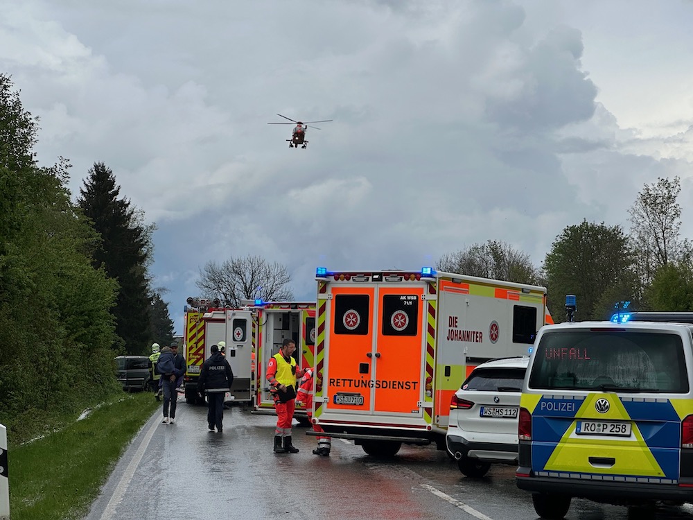 Bundesstraße bei Edling komplett gesperrt - Rettungshubschrauber im Einsatz