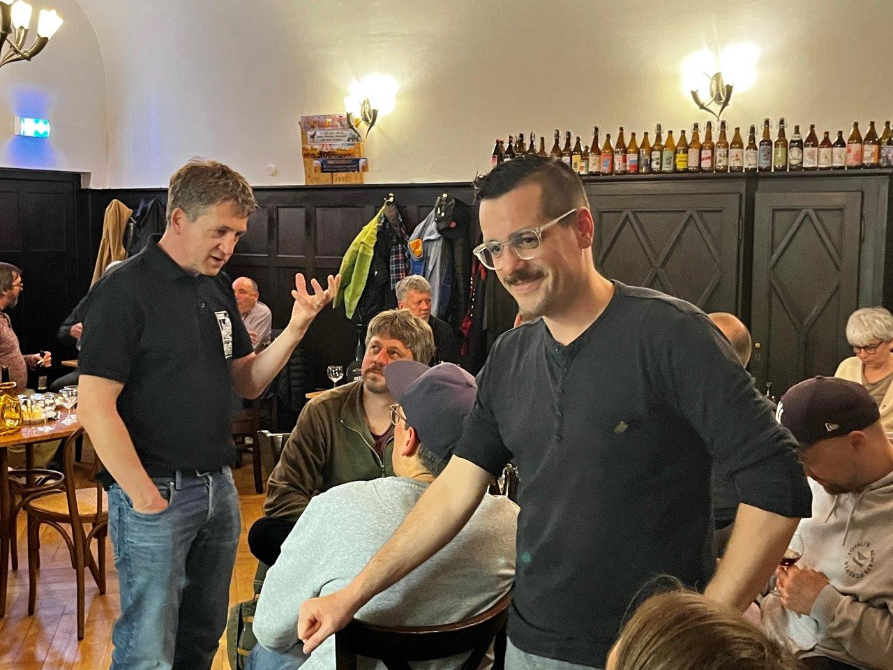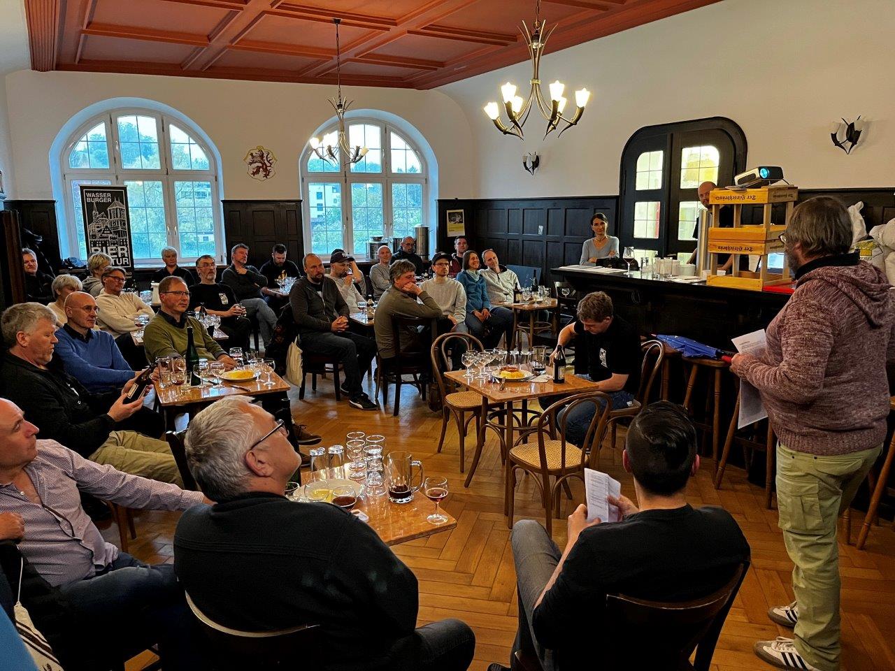 Der erste Vorsitzende der Wasserburger Bierkultur, Fabian Pleizier, steuerte für den Abend zwei selbstgebraute Dunkle vom Fass bei. Ihm ging es um die Freiräume beim Heimbrauen. Während es die große Kunst der Profis ist, konstanten Geschmack zu schaffen, darf der Hobbybrauer experimentieren. So brach er auch mit einem eher herben Dunklen als Begrüßungsbier gleich alle konventionellen Erwartungen.
