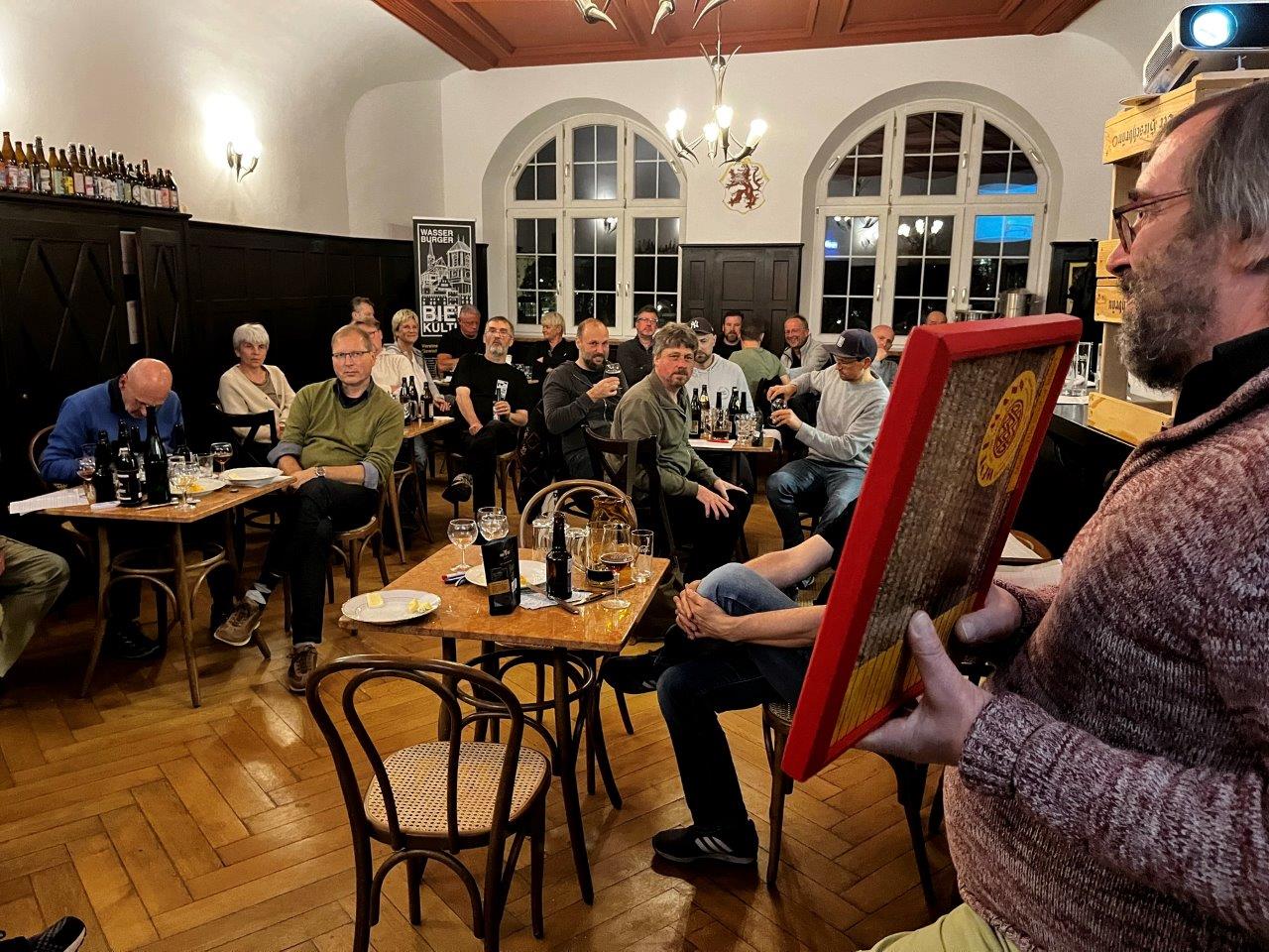 Vom süffig leichten Selbstgebrauten bis zum edlen, schweren Doppelbock namhafter Brauereien ging die Auswahl beim ersten Bierkultur-Event des Wasserburger Vereins Bierkultur . Event – das hieß Verkostung, Food-Pairing – die Geschmackskombination von Bier mit Speisen –, Biergeschichte und -geschichten und Infos zu den Besonderheiten des Brauens von dunklem Bier.