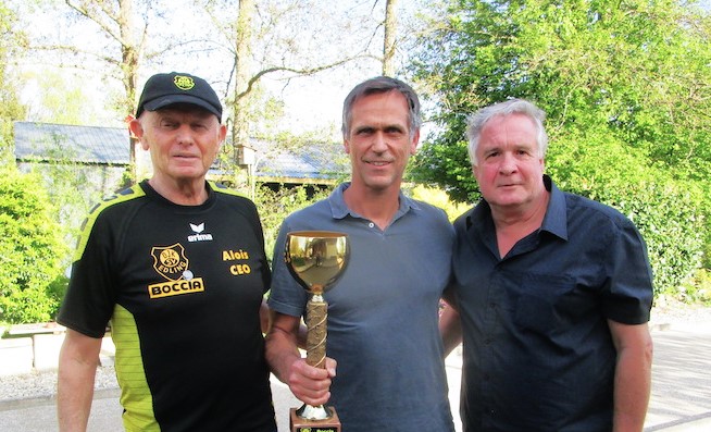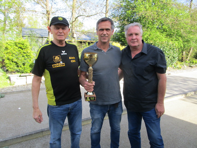 Dabei setzen sich Bernhard Golla und Alfred Rockinger (rechts im Bild) durch und spielten anschließend den Boccia-Pokal aus. In einem sehr guten Finale siegte der an diesem Tag gut aufspielende Bernhard Golla (Bildmitte) verdient und freute sich sehr über diesen Erfolg.