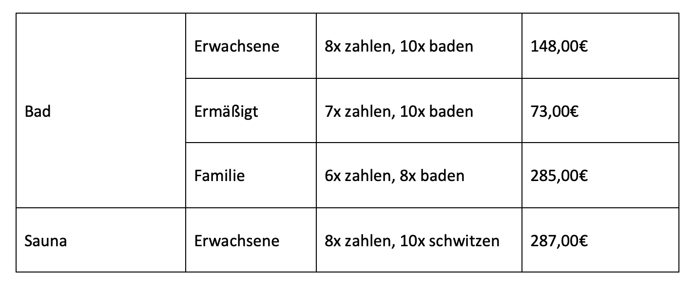 Stimmen die Zahlen? Kostet mich als Erwachsener ein Tag im Freibad ernsthaft 14,80 Euro 😳? Oh, wow.