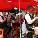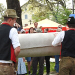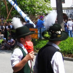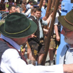 Eine Delegation mit 90 fesch gekleideten Maibaum-Freunden und -Freundinnen war eigens angereist, um dabei zu sein, wenn das Diebesgut aufgestellt werd. Aufm Buidl as Taferl mim Christian oda umgekehrt …