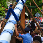 Mim kräftigen Applaus vo de Zuschauer nebst einem zünftigen Tusch Blasmusi vo da Rotter Musi stand er dann fest in da Verankerung – das guad 30 Meter hohe Traditionsstangerl um 14.45 Uhr. Hau-ruck – guad is ganga, Rott! Hier unsane Buidln …