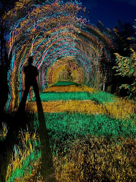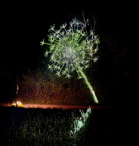 Helmut Edings zauberhafte, leuchtende Kugeln schmücken auch in diesem Jahr wieder die Wiese unter den Bäumen.