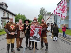 Die Bürgerspiel-Familie ließ es sich nicht nehmen, am Einzug zum Frühlingsfest teilzunehmen. Alle Teilnehmer wurden stilecht mit tollen Kostümen ausgestattet (wir berichteten) und machten sich, auch trotz nicht optimaler Wetterbedingungen, auf den Weg zum Festplatz. Alle hatten gute Laune mitgebracht und machten an der Zugspitze mit einem lauten „Jubel“ auf das Spektakel aufmerksam.