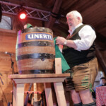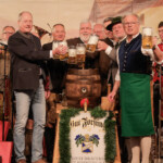 Landrat Otto Lederer zapfte höchst professionell Fass der Brauerei Unertl an, ohne nur einen Tropfen zu vergeuden.