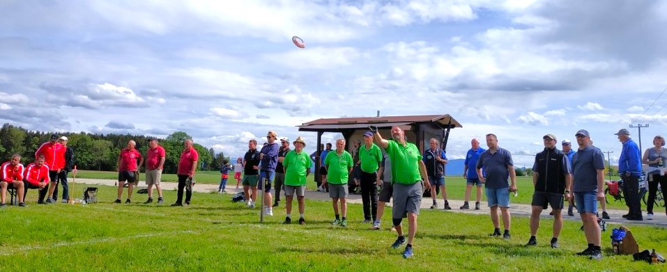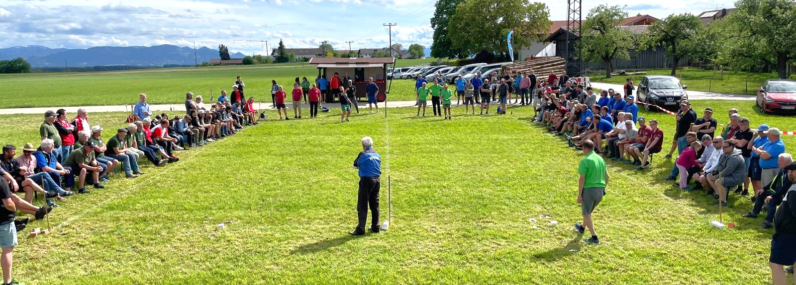 Um 10 Uhr begannen die spannenden Wettkämpfe; in zwei Gruppen von je zwölf Mannschaften und einer Gruppe mit elf Mannschaften wurde um jeden Zentimeter gerungen. Die Wurfleistungen auf den vielen 18m-Bahnen waren hervorragend, in fünf Kehren wurde der jeweilige Sieger ermittelt.