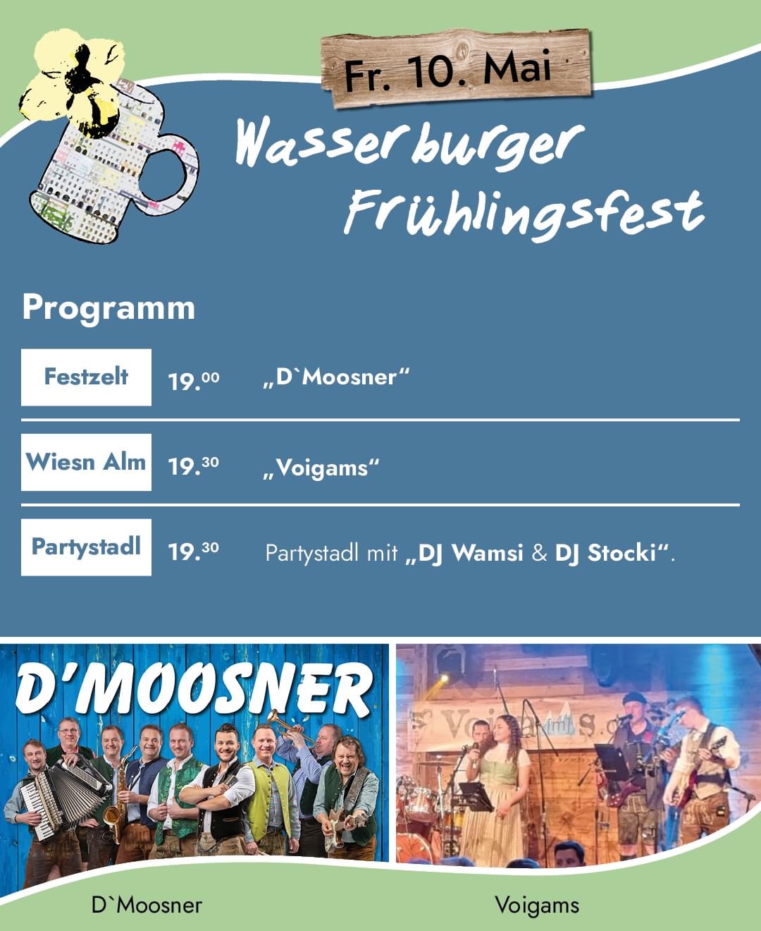 Die Wiesnalm empfängt seine Gäste ab 14 Uhr bei Kaffee und Kuchen. Ab 19.30 Uhr spielt die Band „Voigams“. Von traditionellen bayerischen Klängen bis hin zu modernen Pop- und Rockhits haben sie für jeden Geschmack etwas zu bieten. Im Partystadl sorgen mit „DJ Wamsi“ und „DJ Stocki“ gleich zwei DJ-Ikonen für die richtigen Hits zum Feiern ins Wochenende.
