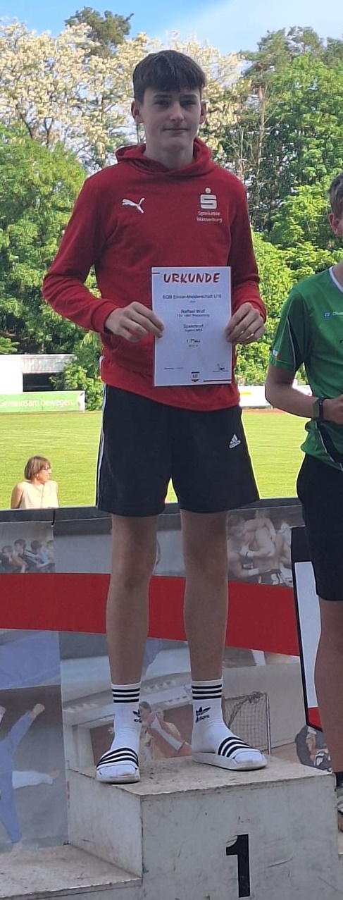 Eine wahre Leistungsexplosion erlebte Sophia Scheidegger in den Wurfdisziplinen der W14. Im Kugelstoß steigerte sie sich um 91 Zentimeter auf genau 10 Meter und im Diskuswurf über 3 Metern auf 26,30 Meter. In beiden Disziplinen konnte Sophia sich über den Sieg freuen. Außerdem erzielte sie über 80m Hürden noch eine neue Bestleistung mit 13,68 Sekunden und lag damit knapp hinter ihrer Vereinskameradin Finja Ott, die mit 13,45 Sekunden ebenfalls eine neue Bestleistung aufstellte. Damit belegten die beiden Wasserburgerinnen die Plätze 3 und 4. Finja wurde außerdem noch Vierte im Hochsprung der W14 mit 1,35 Metern.