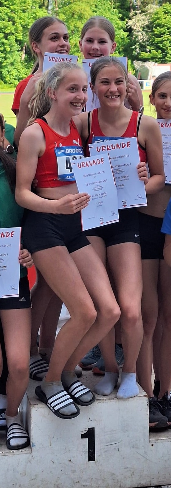 In der Besetzung Finja Ott, Laura Dirnecker, Sophia Scheidegger und Mathilde Golla gewannen die Wasserburger Mädels die 4×100-Meter-Staffel mit der sehr guten Zeit von 52,74 Sekunden.