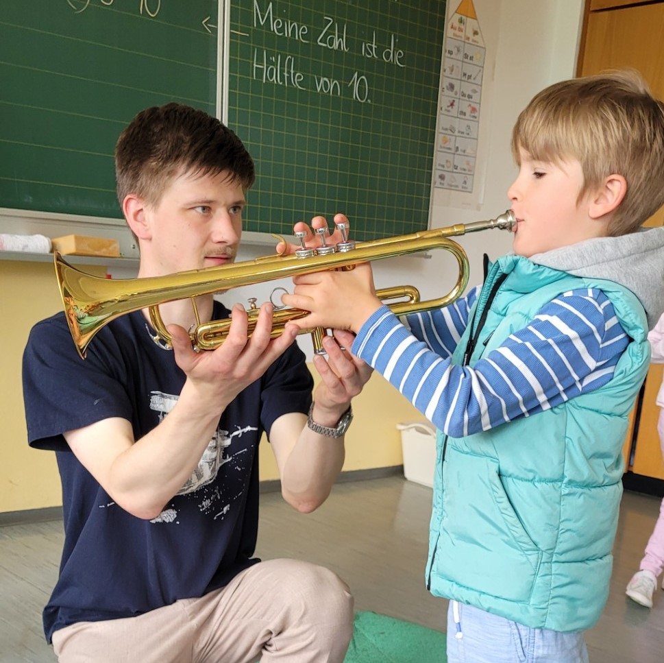Der Musikverein lud alle Besucher ein, die einzelnen Instrumente zu testen.
