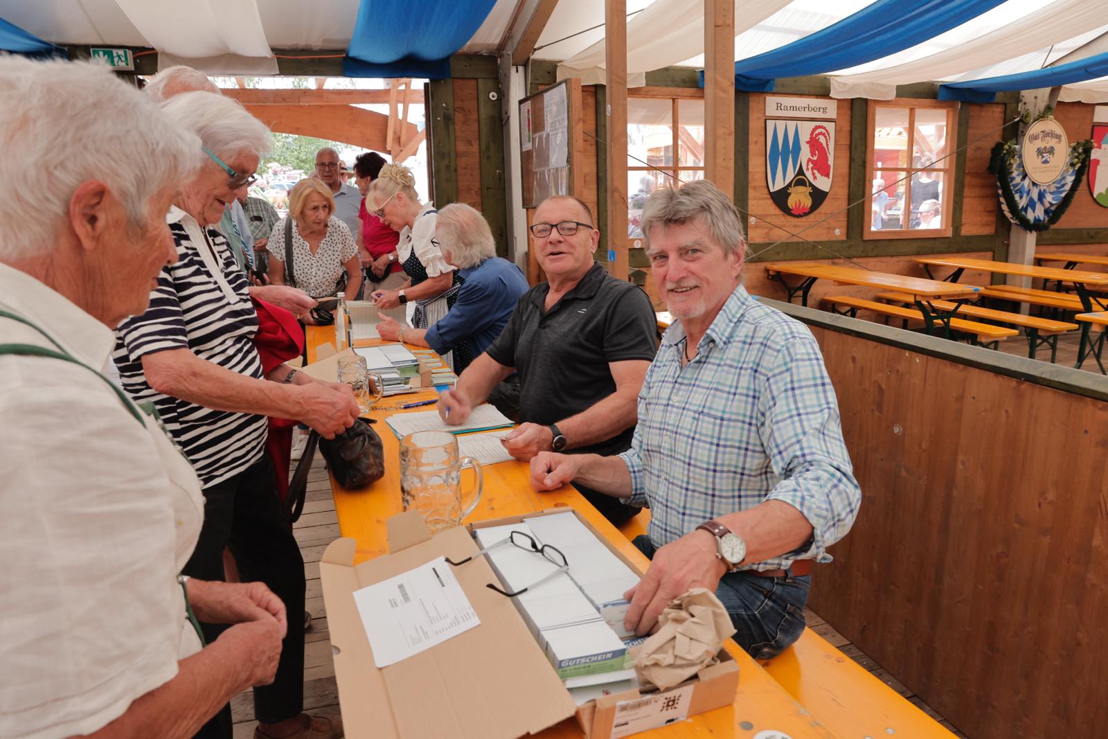 Gestern sorgte im Festzelt die „Bayern 1″-Band für Stimmung. In der Wiesn-Alm spielte „Host mi“ zünftig auf. Fotos: Stefan Pfuhl und Lisa Sünkel.