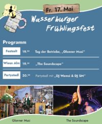 Beim Wasserburger Frühlingsfest ist heute „Tag der Betriebe“. Der wichtigste Geschäftstermin für alle Unternehmer aus dem Altlandkreis. Die „Glonner Musi“ sorgt ab 19 Uhr mit schwungvoller Blasmusik für den passenden Rahmen, um gemeinsam im Forstinger Festzelt zu feiern.